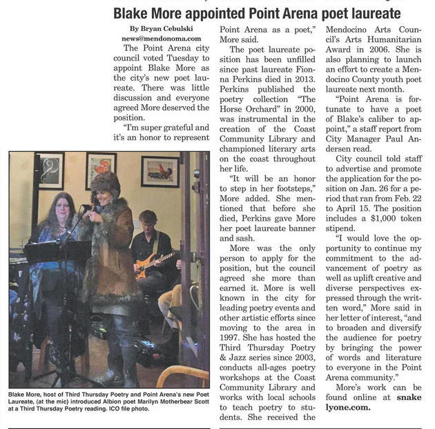 Blake More Appointed Point Area Poet Laureate